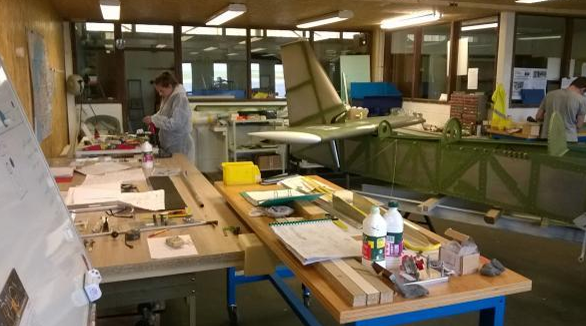 En septembre 2017, l’avion montre déjà une belle progression : les ailes sont prêtes, le fuselage assemblé, et les premières commandes en place. Les élèves poursuivent les ajustements, les perçages et les rivetages, tout en découvrant l’importance du contrôle qualité à chaque étape.
